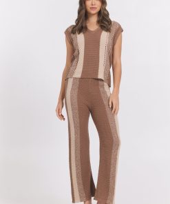 VintageHavana Women’s Summer Sand White Short Sleeve Sweater W/ Whipstitch | Summer Sand With White