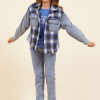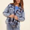 The Denim & Blue Plaid Frayed Button Down combines classic blue plaid with denim accents for a stylish, laid-back look. Featuring a button closure and front pockets, it offers both convenience and practicality. The subtle fray details add a touch of casual edge, making this shirt a versatile addition to your wardrobe. Perfect for layering or wearing on its own, it balances comfort with timeless style.