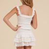 The White Ruffle Detail Smocked Top combines a comfortable smocked base with delicate ruffle accents for a flattering fit. Designed as a tube top with straps, it offers both support and style, making it a versatile piece for casual or dressier occasions. Its lightweight fabric and feminine details ensure you stay cool and chic throughout the day.