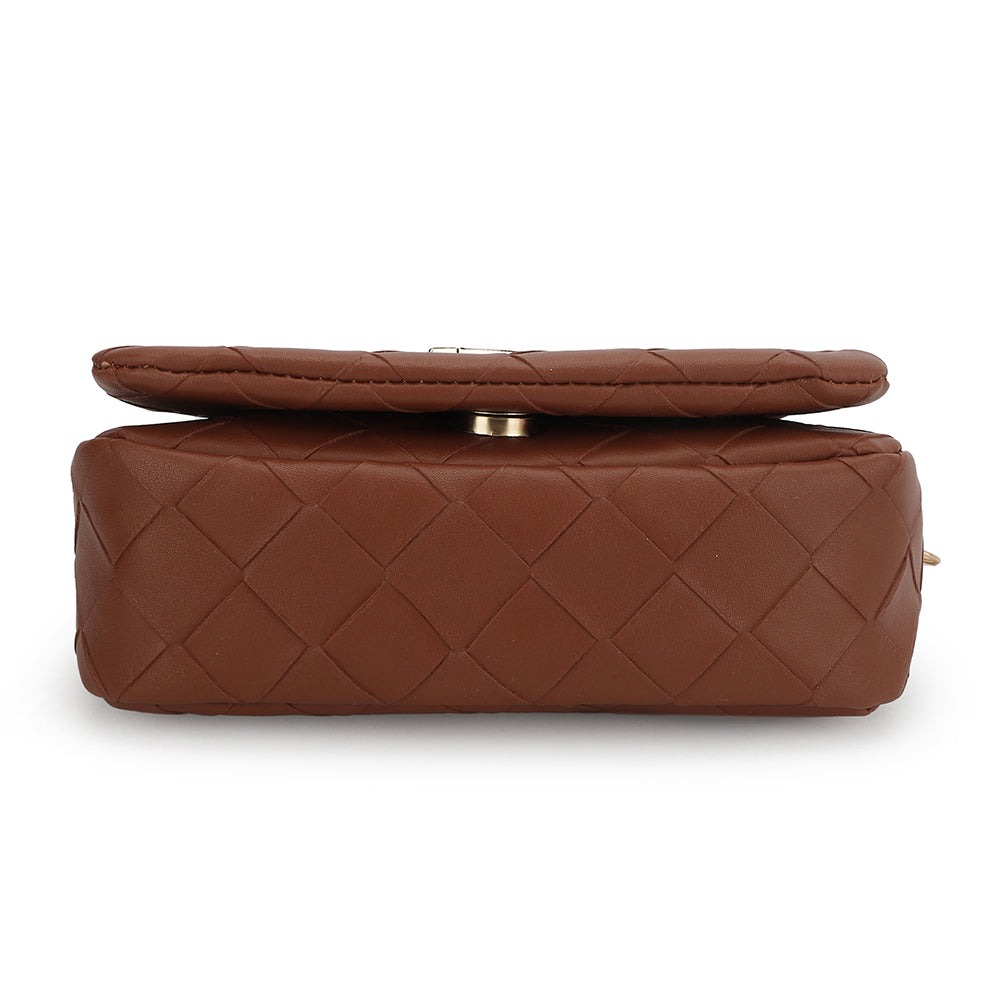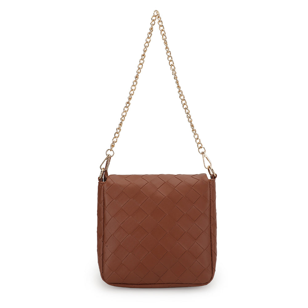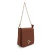 The Allie Bag in brown combines sleek design with practical features. It includes a stylish chain shoulder strap for comfortable wear and a metallic logo that adds a subtle touch of elegance. The snap closure ensures your belongings stay secure while providing easy access. Perfect for everyday use or special occasions, this bag offers both functionality and timeless style.