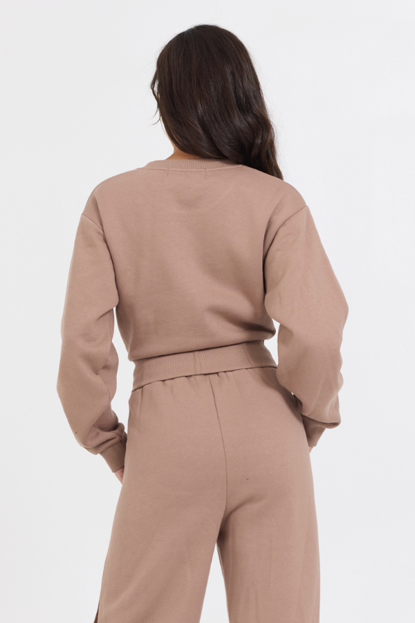 The Caramel Latte Brushed Fleece Corset Crew features: