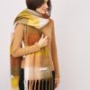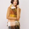 This yellow check brushed scarf features a soft, brushed texture with delicate tassel fringes, crafted from 100% polyester for lightweight warmth and durability. Its classic plaid pattern adds a timeless touch to any outfit, making it a versatile accessory for both casual and polished looks.