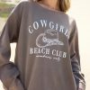 Elevate your casual wardrobe with our “Cowgirls Beach Club” Garment Dye Crewneck. This comfortable pullover features classic crewneck styling and a distinctive front chest graphic that captures beach-inspired western flair. Perfect for layering or wearing solo, this versatile piece effortlessly combines comfort with laid-back style.