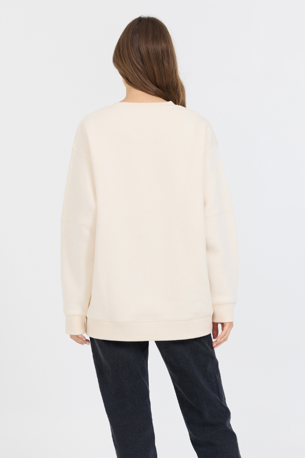 The Cream W/ Royal Blue Dye Fleece Crew W/ Glitter Print features: