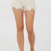 The Ivory Crochet Knit Scallop Edge Shorts features: