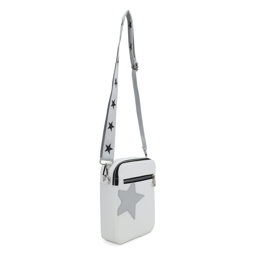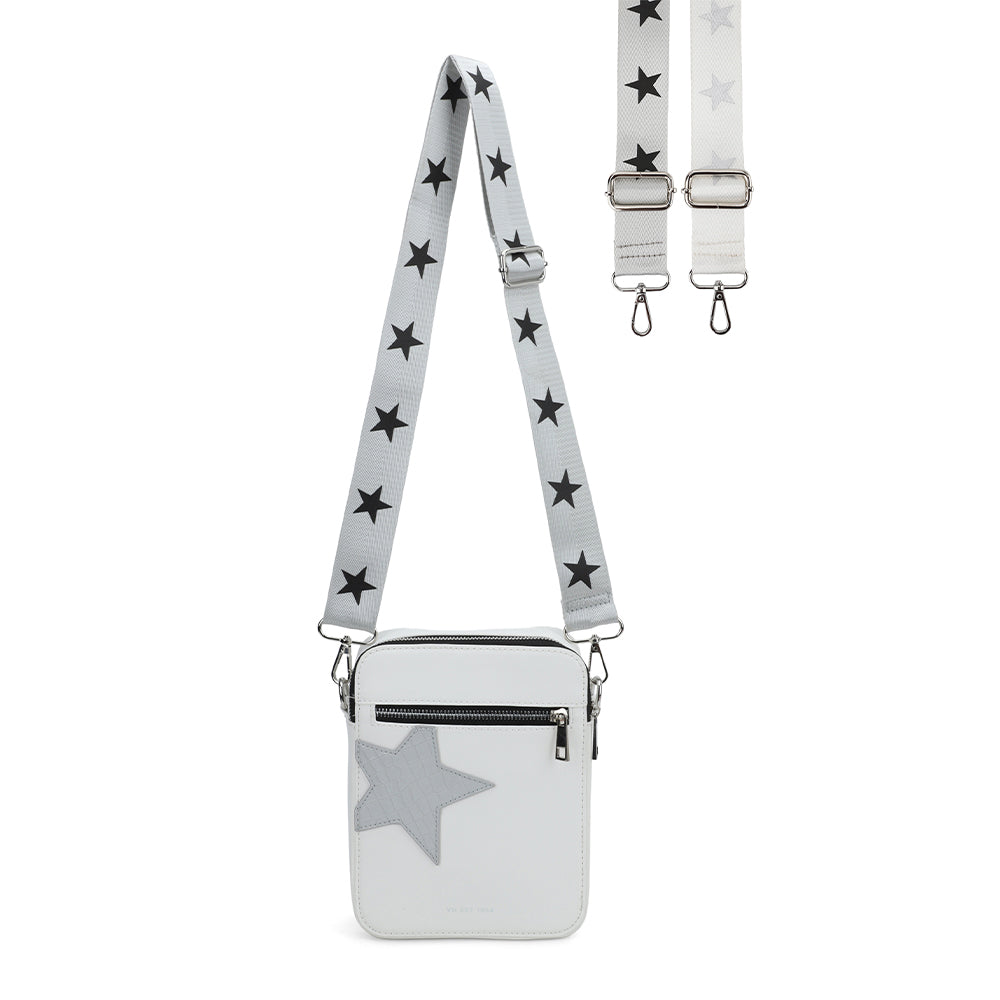 The Joy Bag in Silver Croco offers a stylish star detail and two versatile straps, allowing you to switch between looks effortlessly. Designed for comfort and convenience, it can be worn crossbody, making it perfect for hands-free days while adding a chic touch to any outfit.