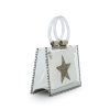 The Mini Molly in White and Gold offers a sleek design with a convenient top strap for easy carrying. Its pull-to-close feature ensures your belongings stay secure while providing quick access when needed. Perfect for those who value both style and functionality in a compact bag.