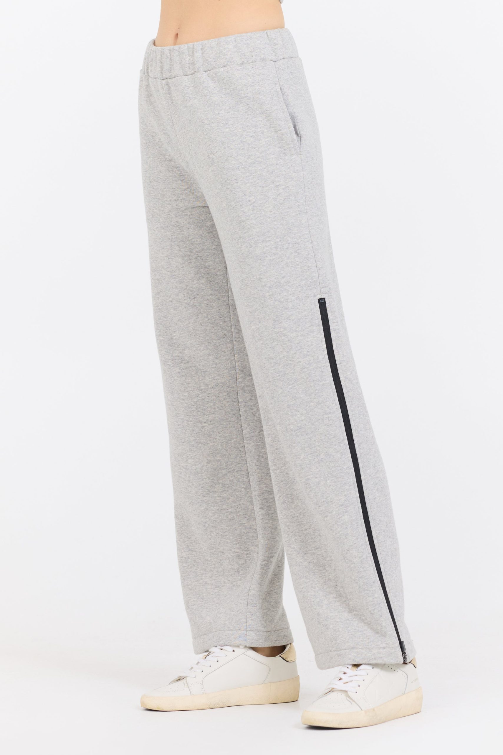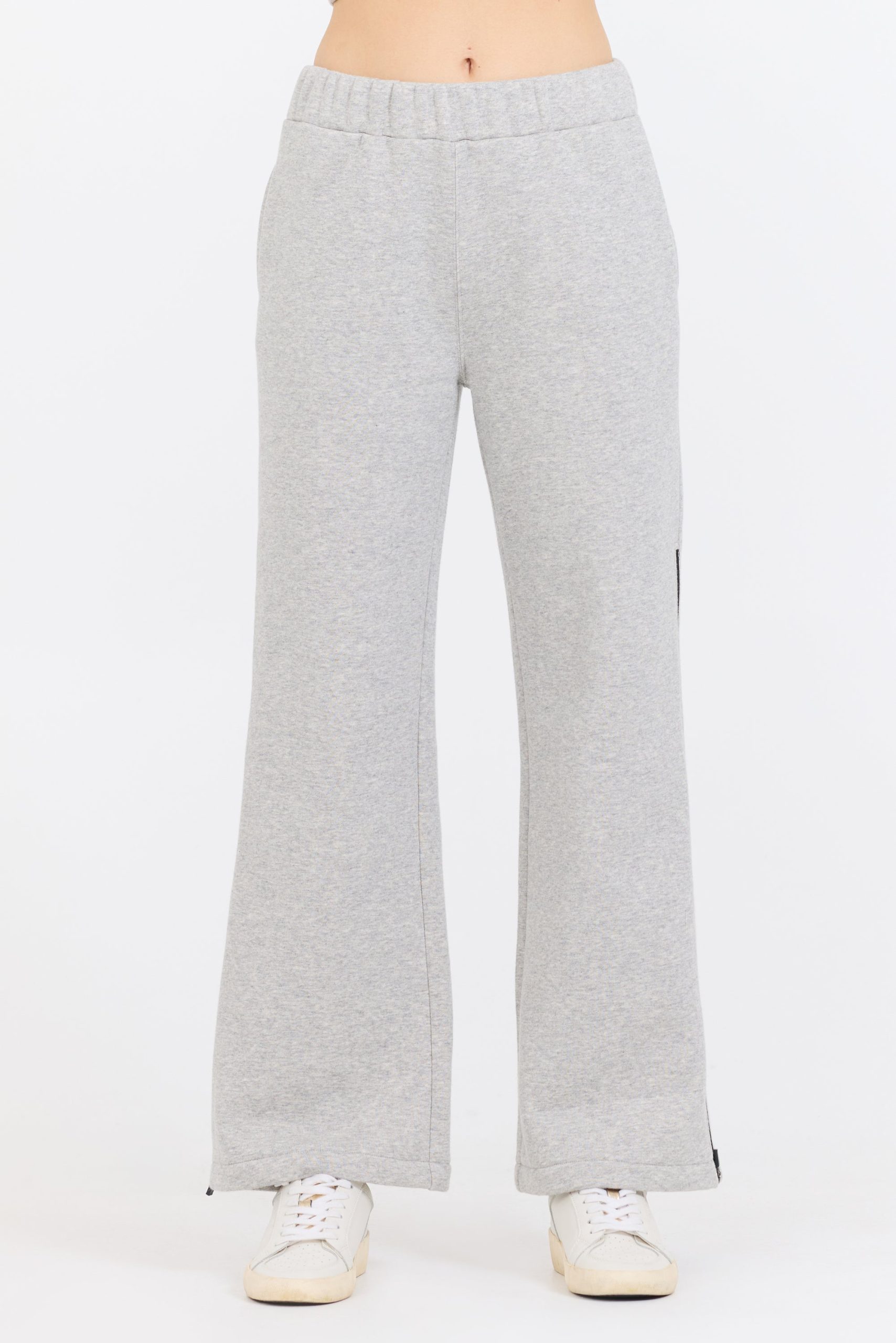 The Pure Grey Contrast Black Zipper Flare Pant features: