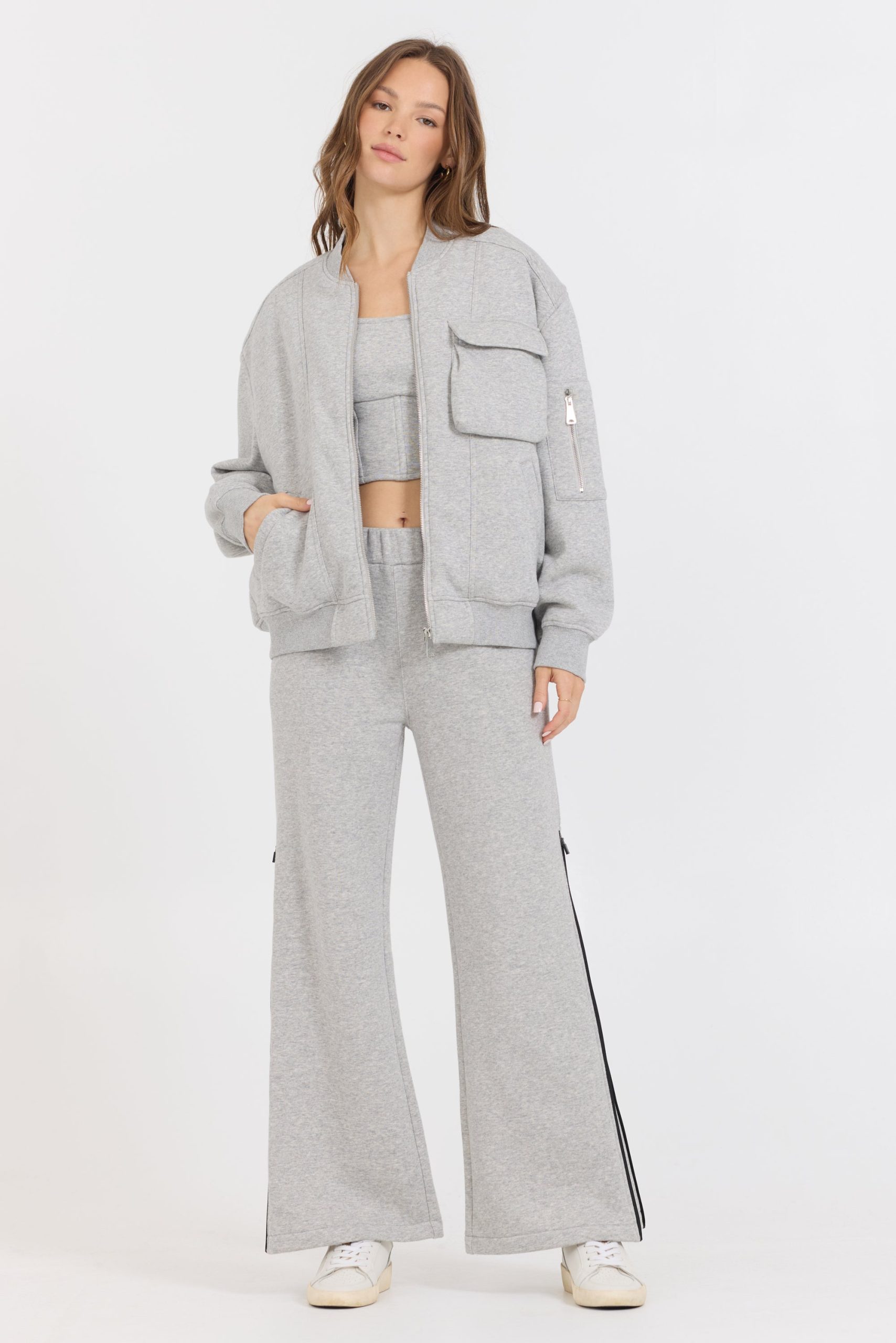 The Pure Grey Contrast Black Zipper Flare Pant combines a sleek flare silhouette with striking contrast detailing and a functional zipper. Designed for a modern, polished look, these pants offer both style and ease of wear, making them a versatile addition to your wardrobe. Perfect for elevating everyday outfits with a subtle edge.