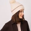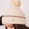 VintageHavana Women’s Ribbed Pompom Beanie – Ivory/tan | Ivory & Tan