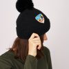 VintageHavana Women’s Ribbed Pompom Beanie With Swiss Alp Patch – Black | Black