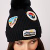 VintageHavana Women’s Ribbed Pompom Beanie With Swiss Alp Patch – Black | Black