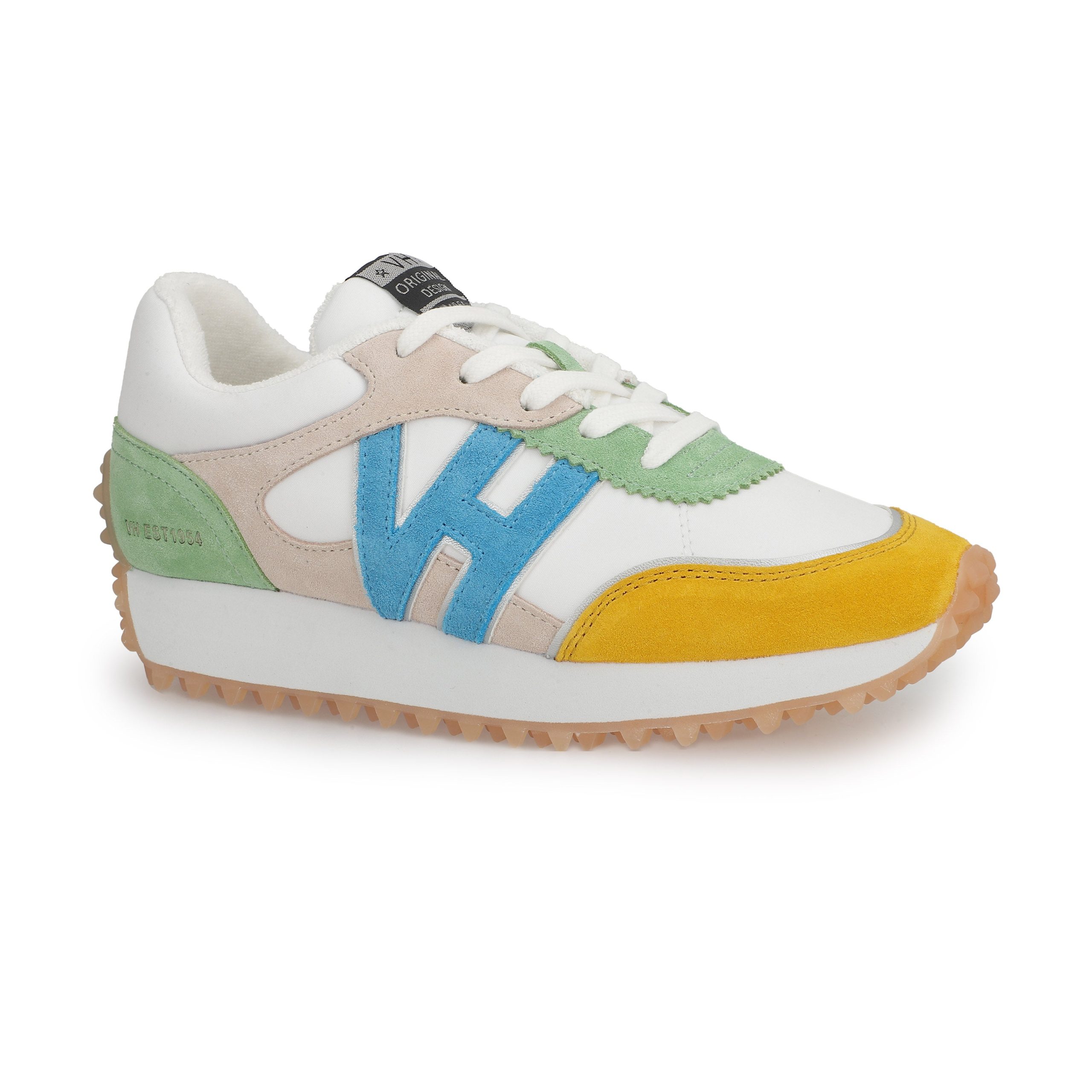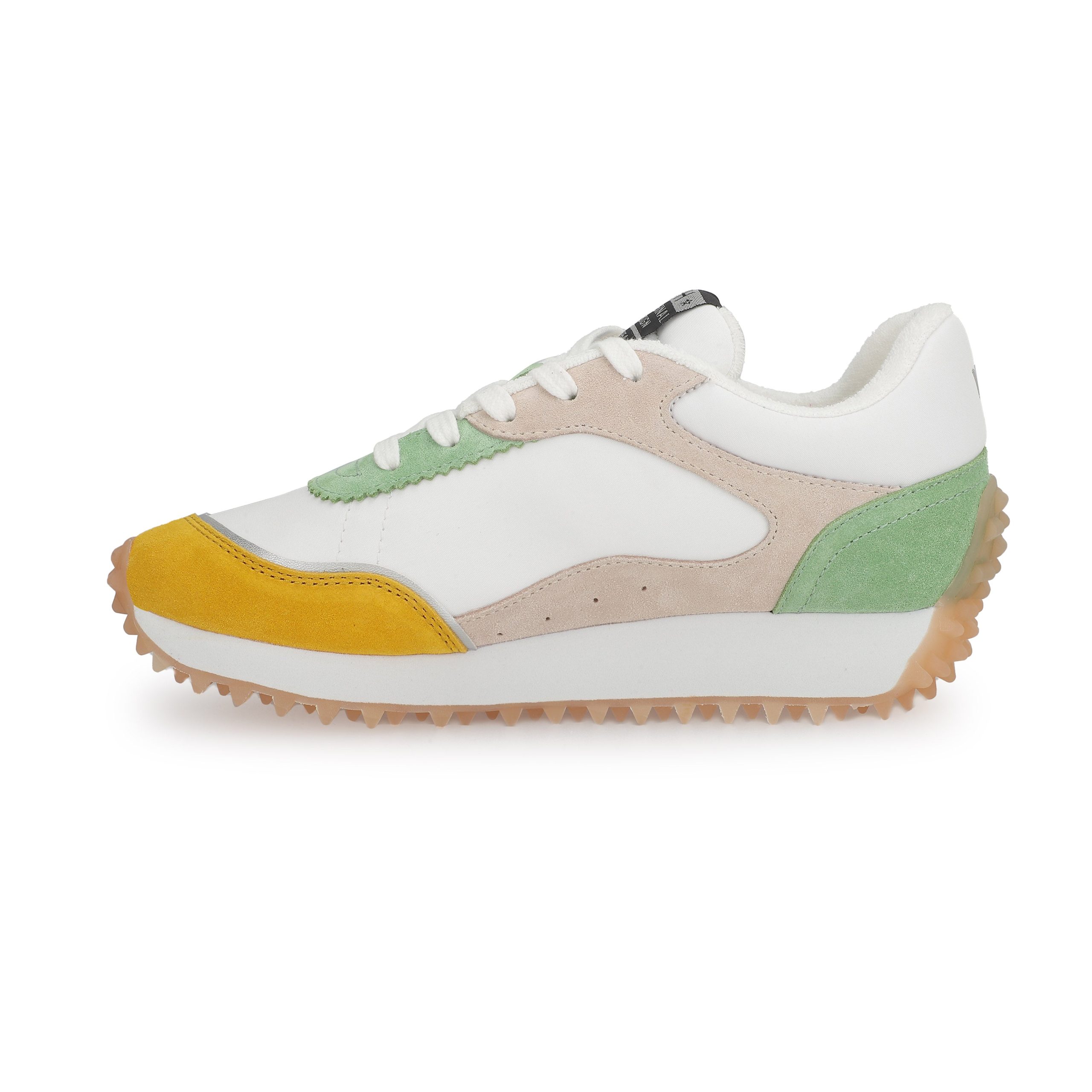 Crafted with a blend of synthetic, leather, and suede materials, these COSMIC shoes in striking mustard, blue, and mint multi-colorway offer effortless style with convenient slip-on design. The no-tie feature ensures quick wear while the signature traction outsole provides reliable grip. True-to-size fit guarantees comfort right out of the box.