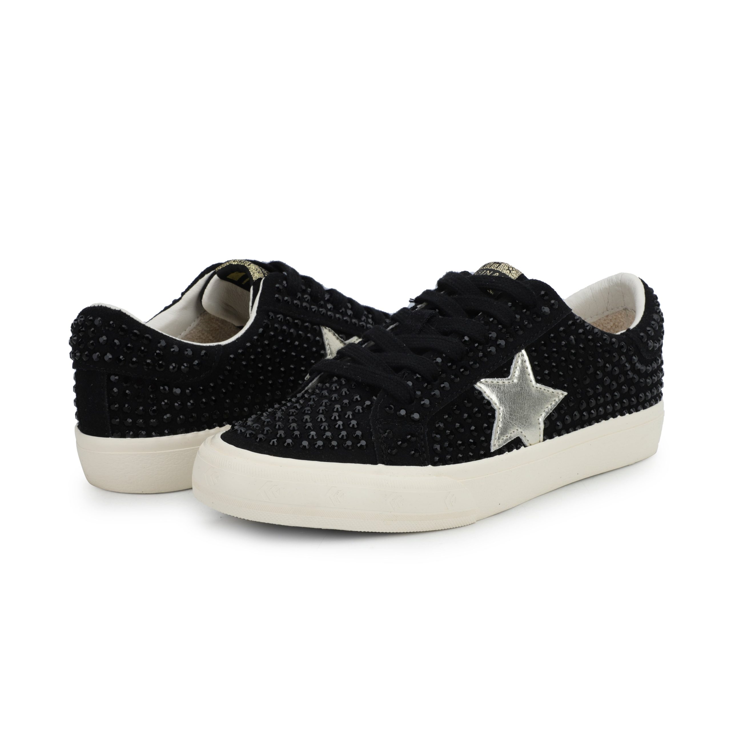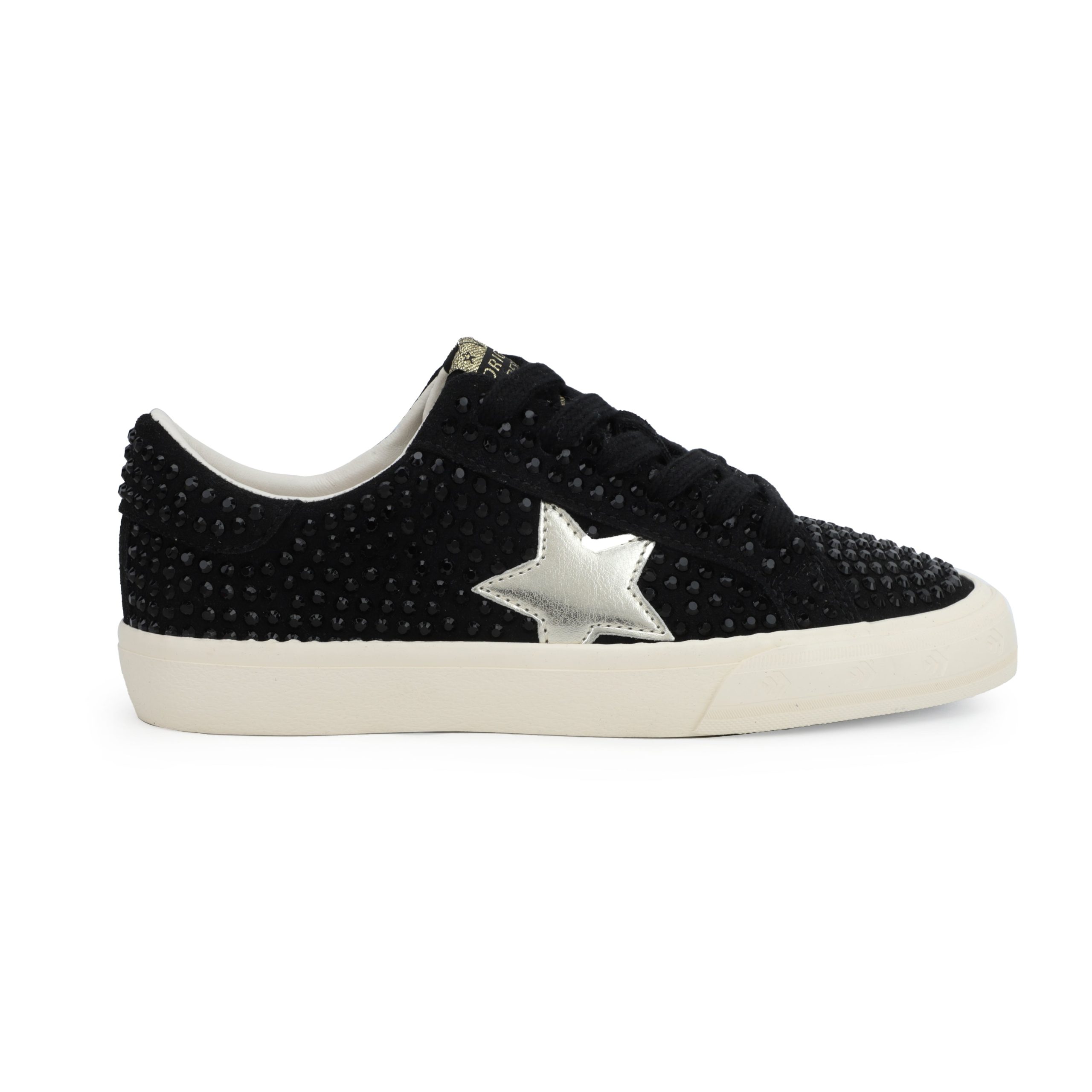 Elevate your style with these sleek black rhinestone-adorned slip-ons. Crafted from a premium blend of synthetic, leather, and suede materials, the GRANDE offers effortless wear with no-tie convenience. The signature traction outsole provides reliable grip, while the true-to-size fit ensures all-day comfort. Perfect for adding a touch of sparkle to any outfit.