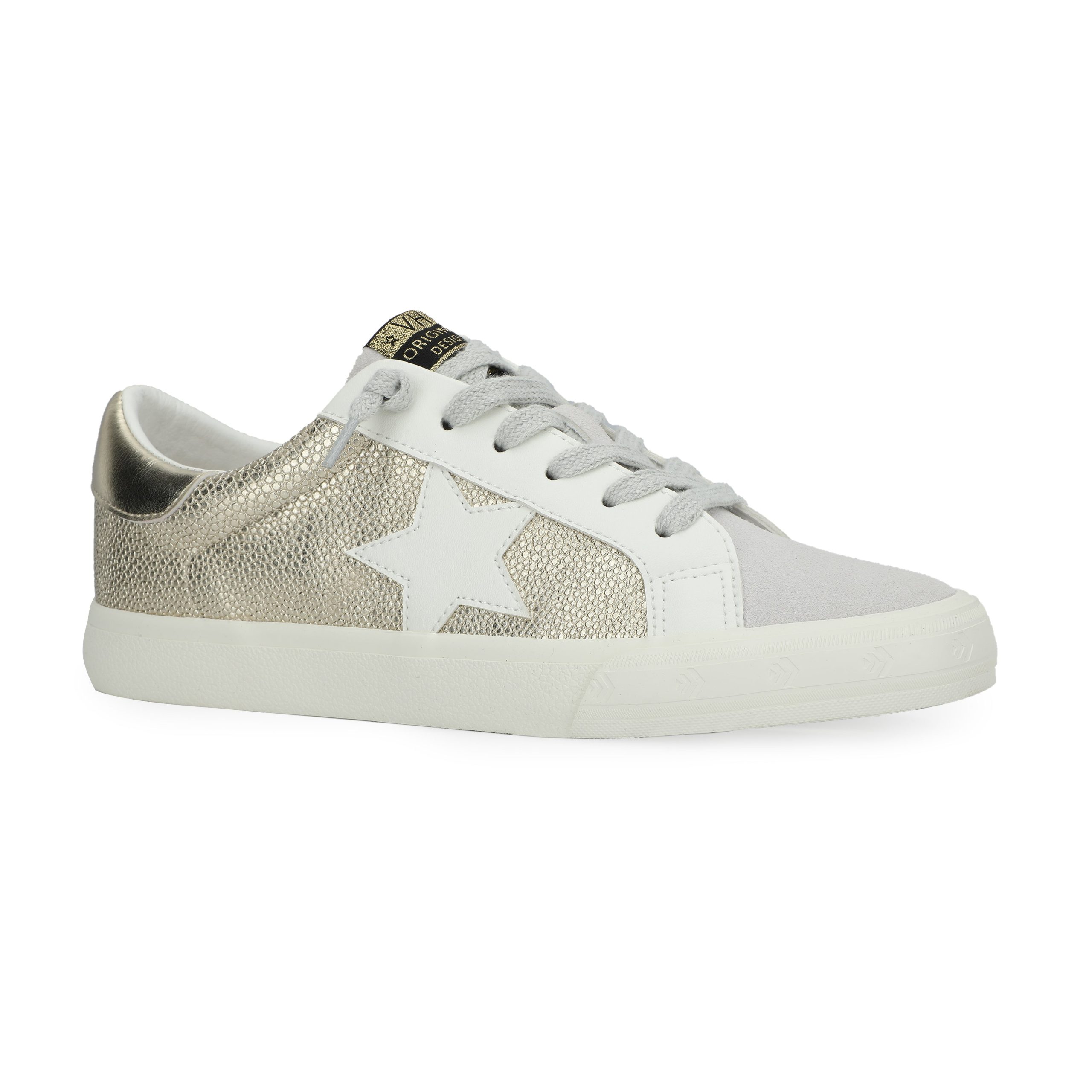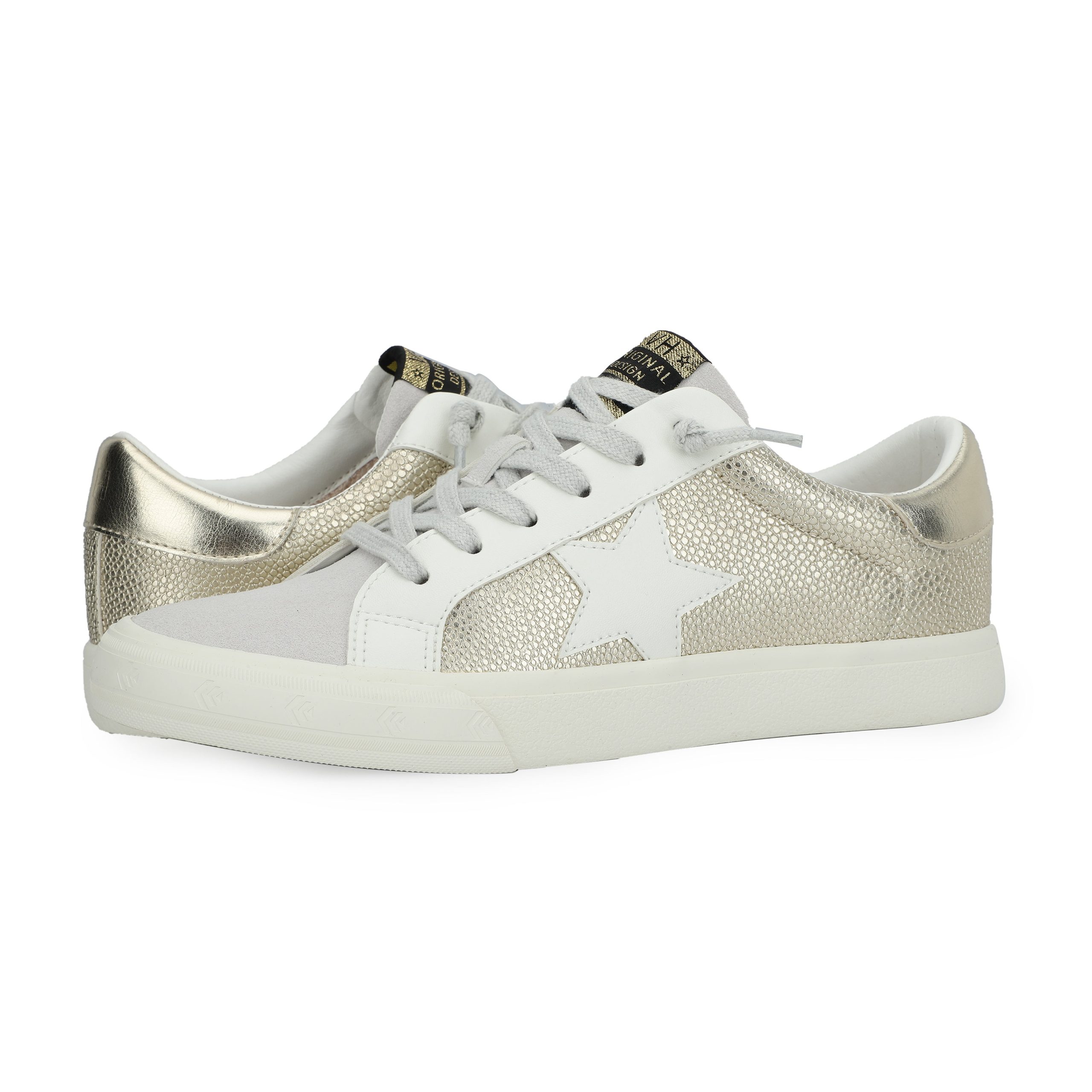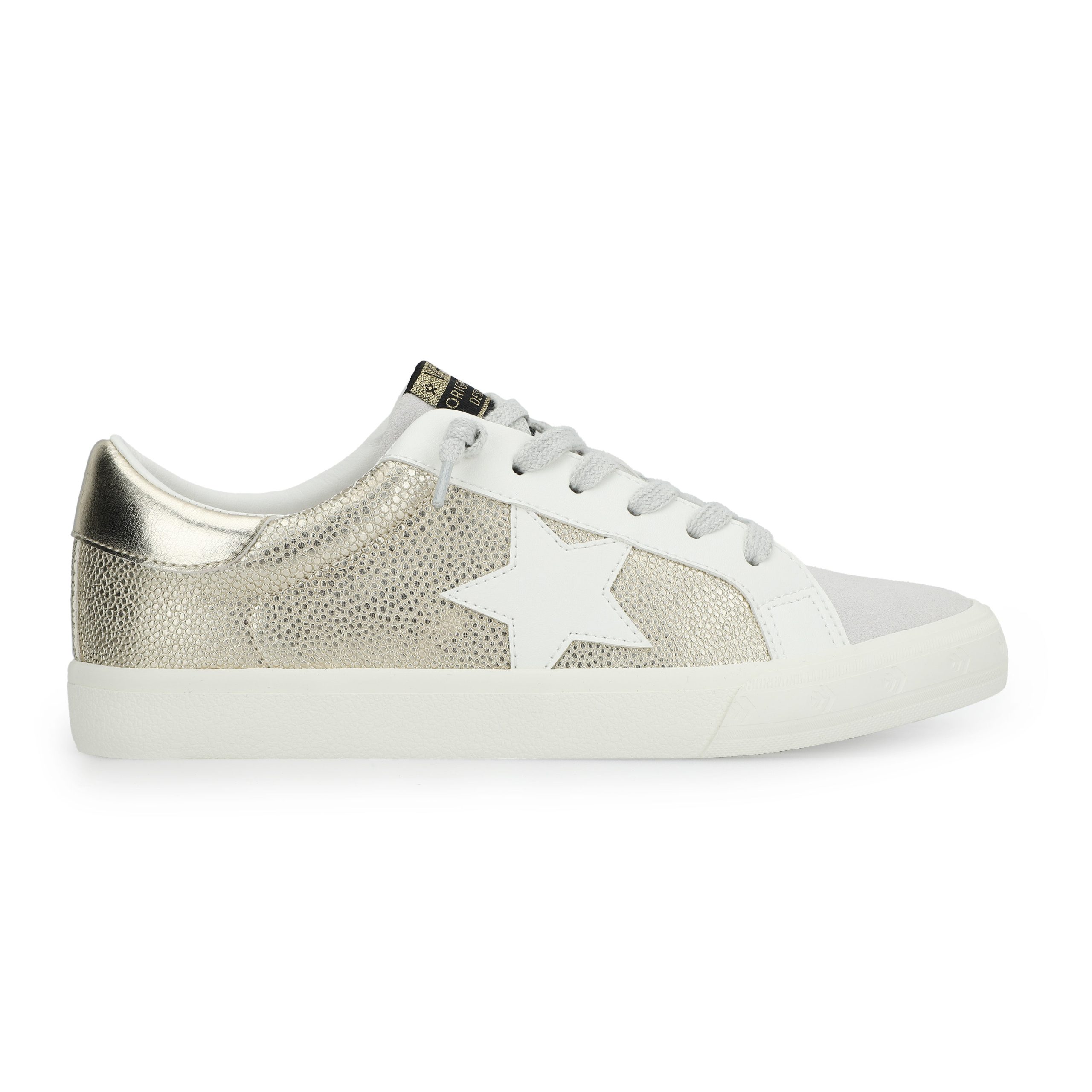 Elevate your style with these metallic gold pebbled GRANDE slip-ons. Crafted from a premium blend of synthetic, leather, and suede materials, these no-tie shoes offer effortless wear with their convenient slip-on design. The distressed outsole adds character and vintage appeal, while the true-to-size fit ensures all-day comfort. Perfect for adding a touch of sophisticated shine to casual outfits.