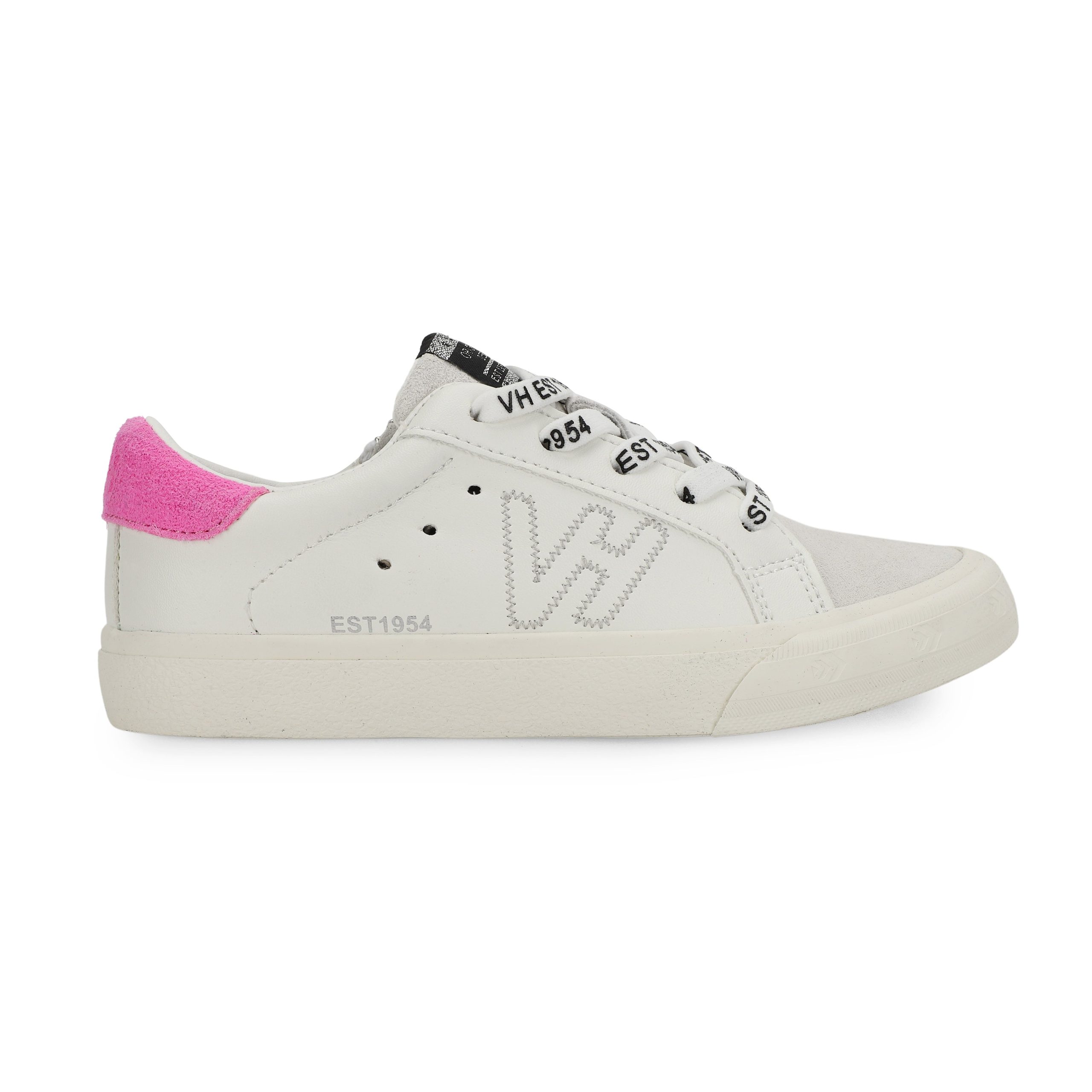 Easy-wearing KIDS VITA in white, grey, and pink features convenient slip-on styling with no ties needed. These shoes fit true to size, making them a practical choice for active children who want both comfort and style in their everyday footwear.
