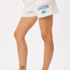 The White St. Barth Jet Setter Surf Wash Shorts combine comfort and style with an elastic waistband for a perfect fit and easy wear. Featuring a distinctive “St. Barth” graphic and subtle gem details, these shorts offer a refined yet relaxed look ideal for casual outings or beach days. Crafted for those who appreciate effortless sophistication in their wardrobe.