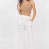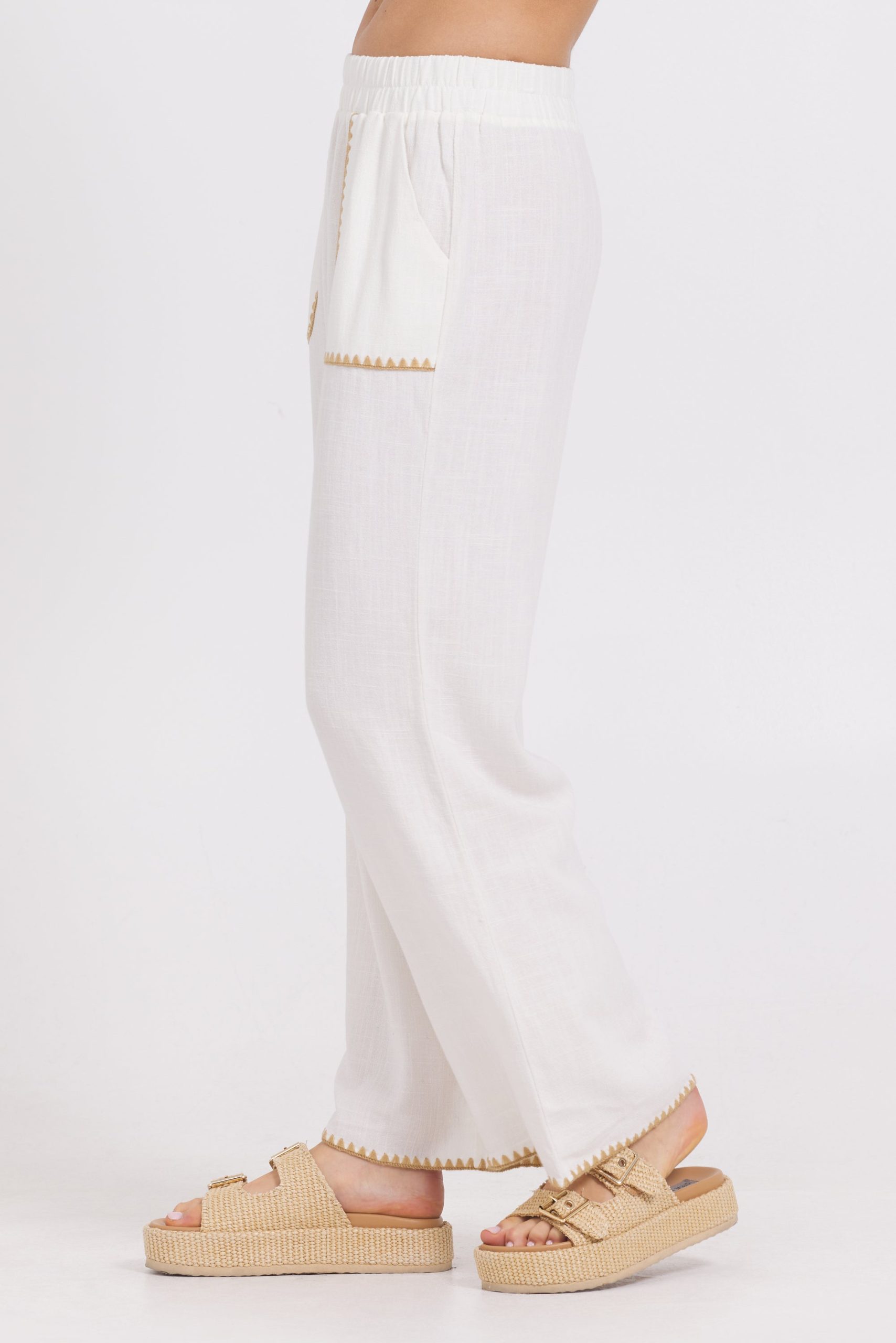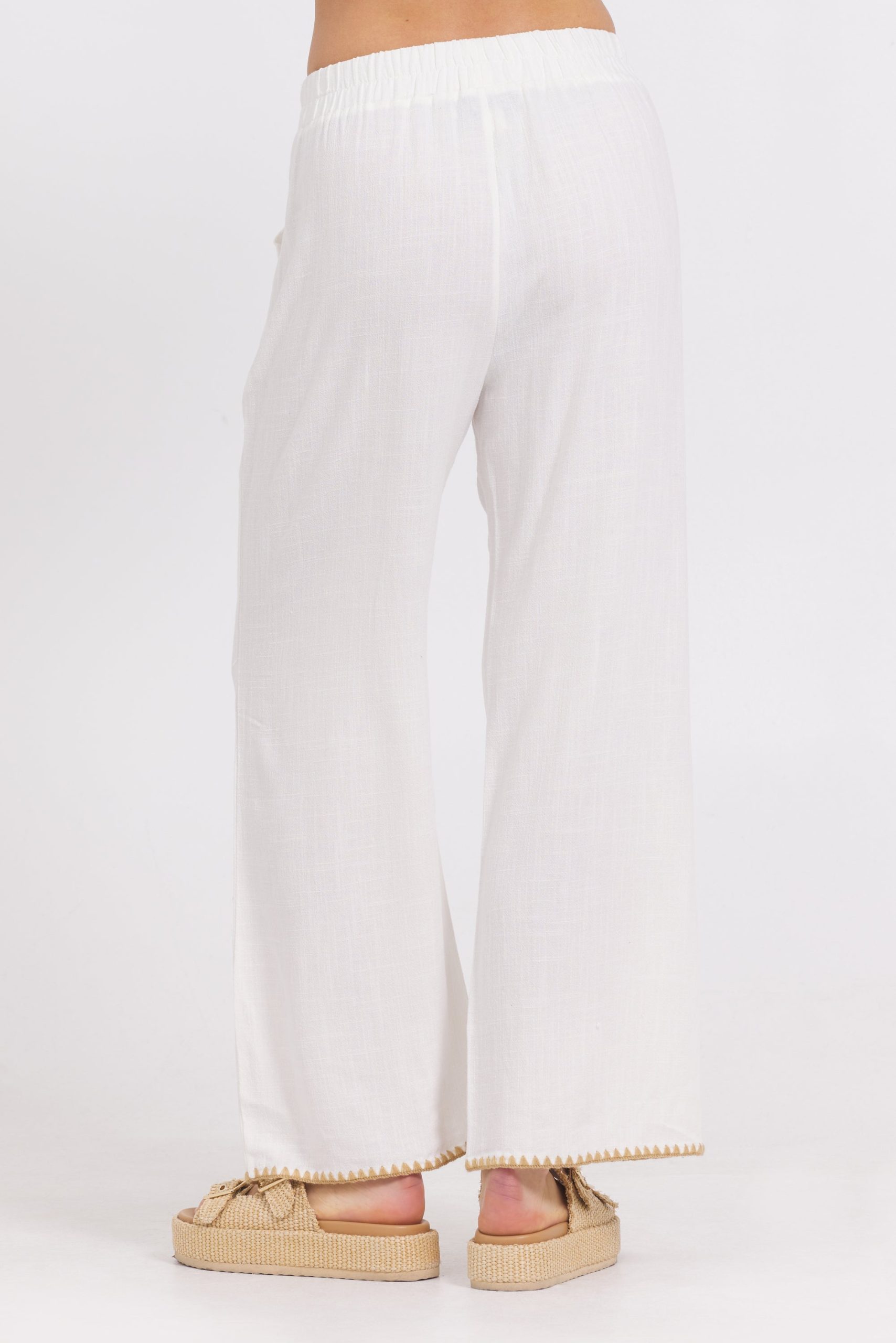 VintageHavana Women’s White Wide Leg Pant W/ Tan Whip Stitch | White